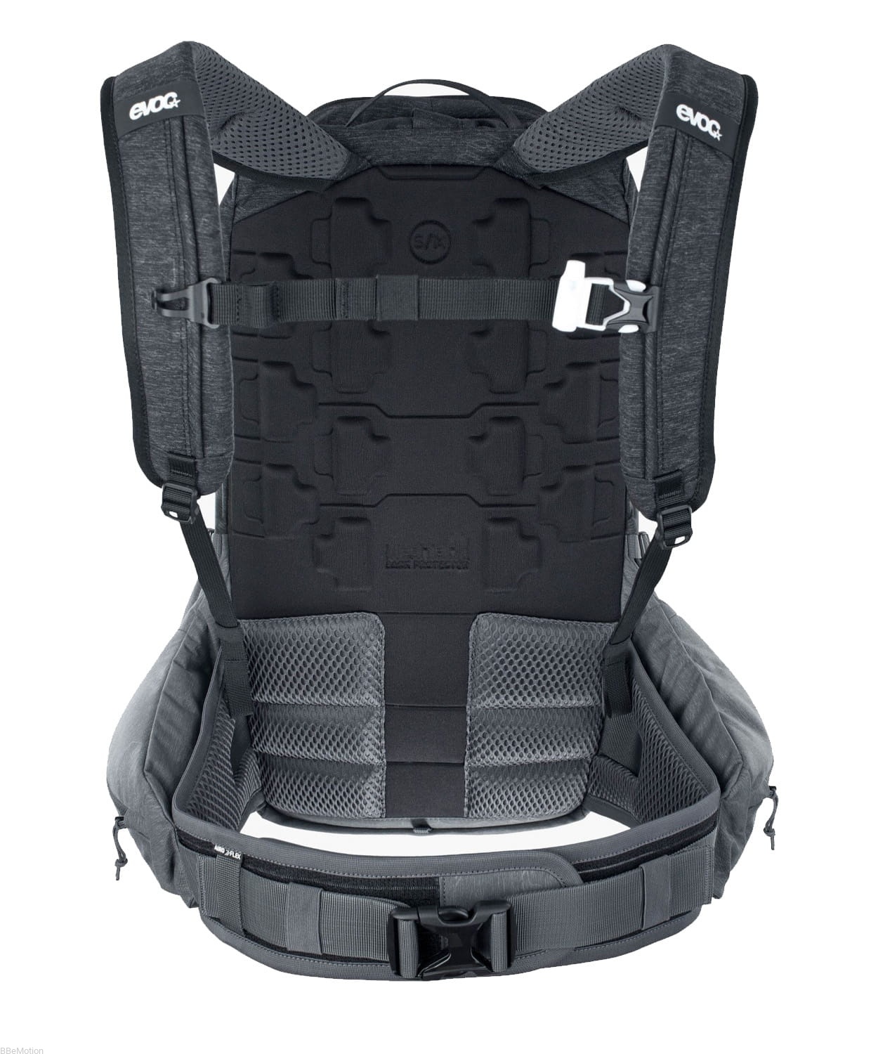 Tajemnica tego modelu tkwi w zastosowanych rozwiązaniach, które czynią z niego doskonałego kompana do wielu rowerowych wypadów. Usztywniany panel w części przylegającej do pleców to niepodważalna zaleta. Spełnia on normę EN 1621-2. Odpowiada za ochronę podczas uderzeń, a dodatkowo wraz z pasem biodrowym stabilizuje całą konstrukcję. Znajdujące się w tym miejscu skrytki kryją pokrowiec przeciwdeszczowy, przez co jazda w niesprzyjających warunkach nie będzie żadną przeszkodą, a przedmioty wewnątrz plecaka nie zamokną. Panel ochronny jest demontowany, więc gdy ulegnie on zniszczeniu, można go bez problemu wymienić na nowy.